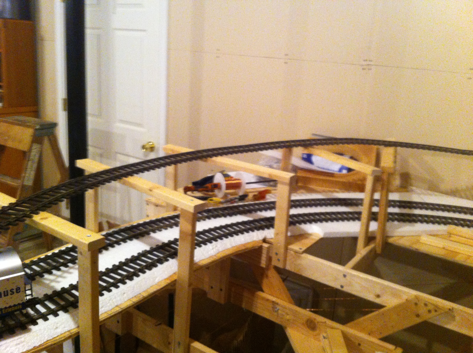 I added some wood underneath the Koenigstein branch line, and have been able to run some trains up the hill. The grade is quite manageable, and even a longer freight train can make it to the top with little difficulty.